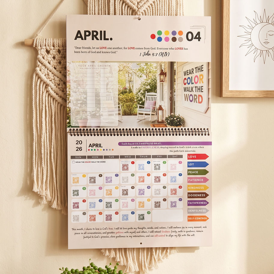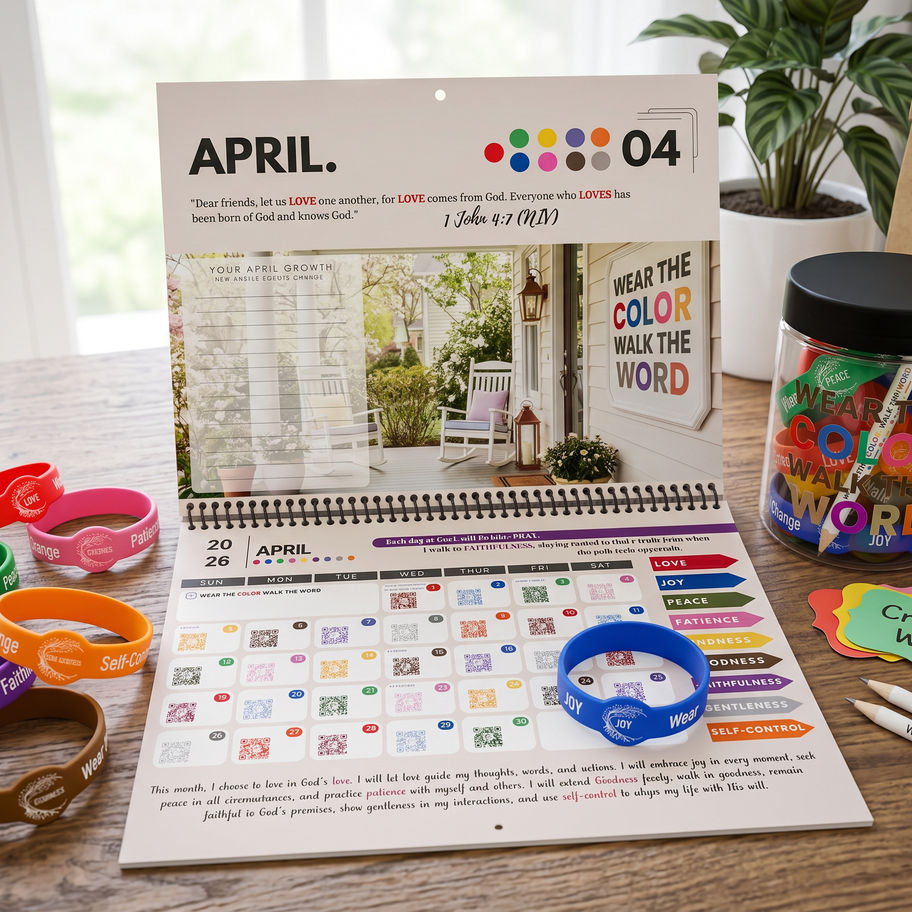 Deepen your faith and transform your daily routine with the Fruit of the Spirit Color of the Day Interactive Calendar! Designed to inspire and uplift, this unique calendar blends Scripture, colors, encouragements, and prayer prompts to help you stay aligned with the Fruit of the Spirit (Galatians 5:22-23) every single day.